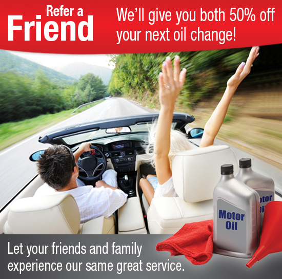Please fill in the info below, click submit, and receive a coupon for 50% off your next oil change! New customers will receive their coupon via email.